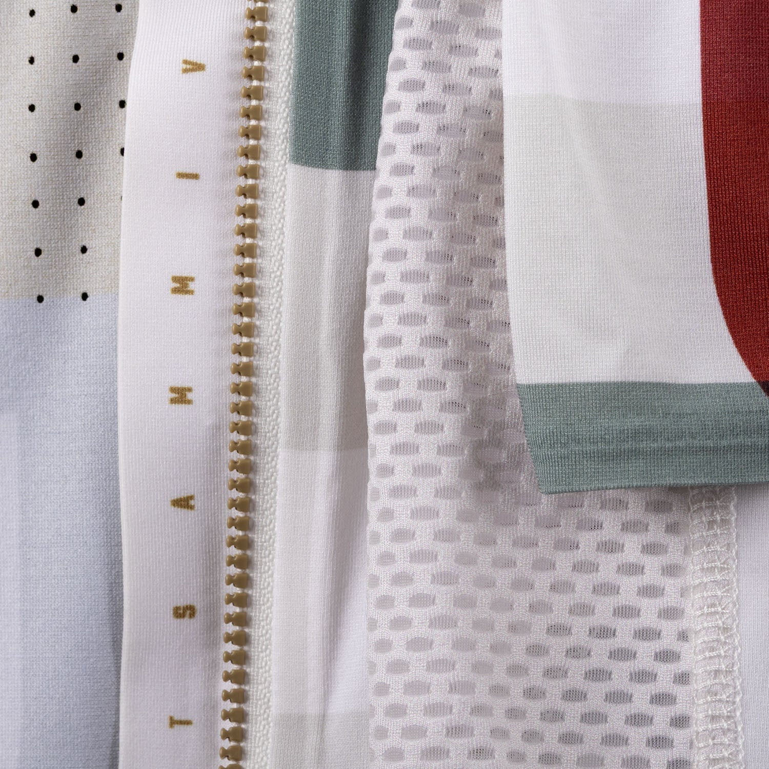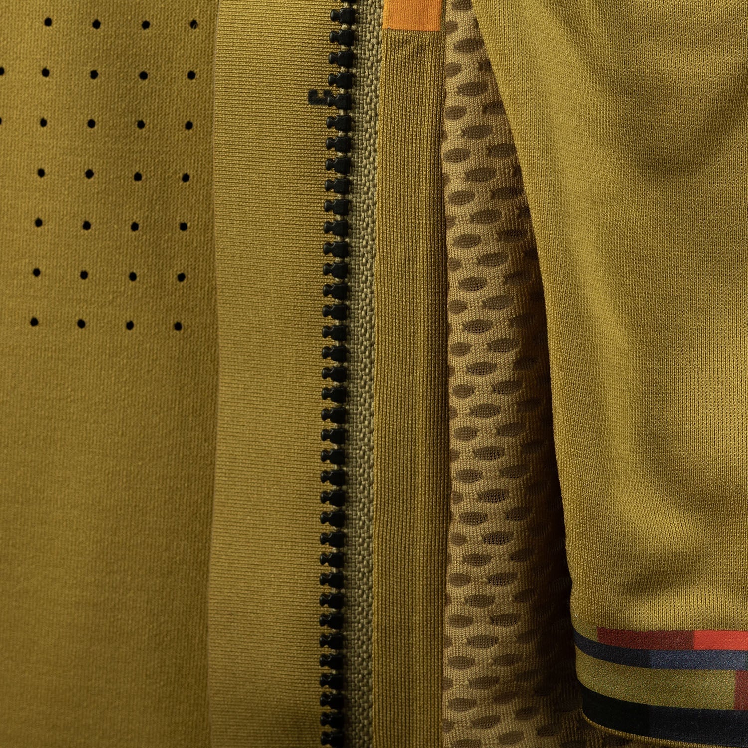 O tecido IceYarn (feito a partir de borras de café recicladas) oferece um efeito refrescante natural e UPF 50, perfeito para jornadas quentes e muitas horas ao sol. A construção foi otimizada para posição semi-agressiva, com conforto de “segunda pele” e ventilação extra através de painéis laterais em mesh stealth.