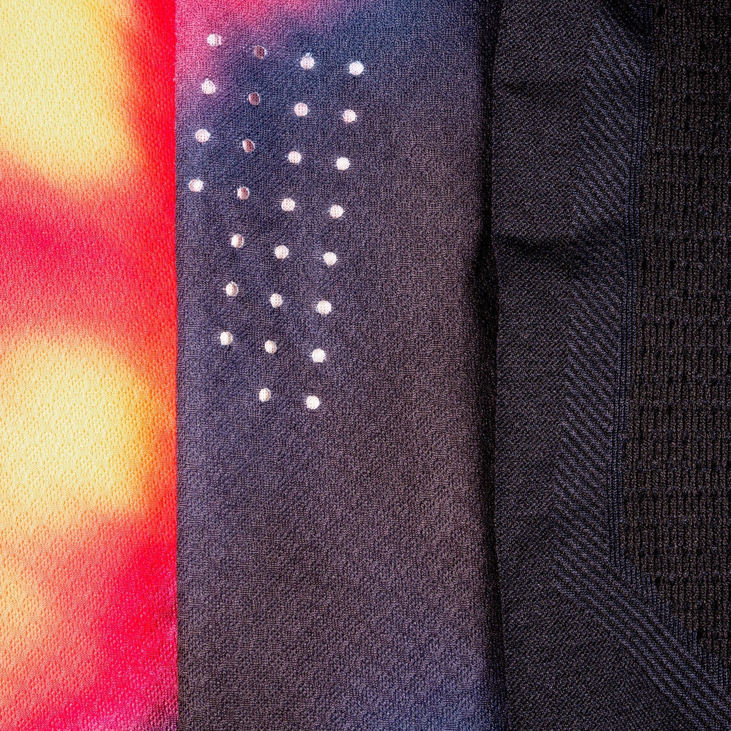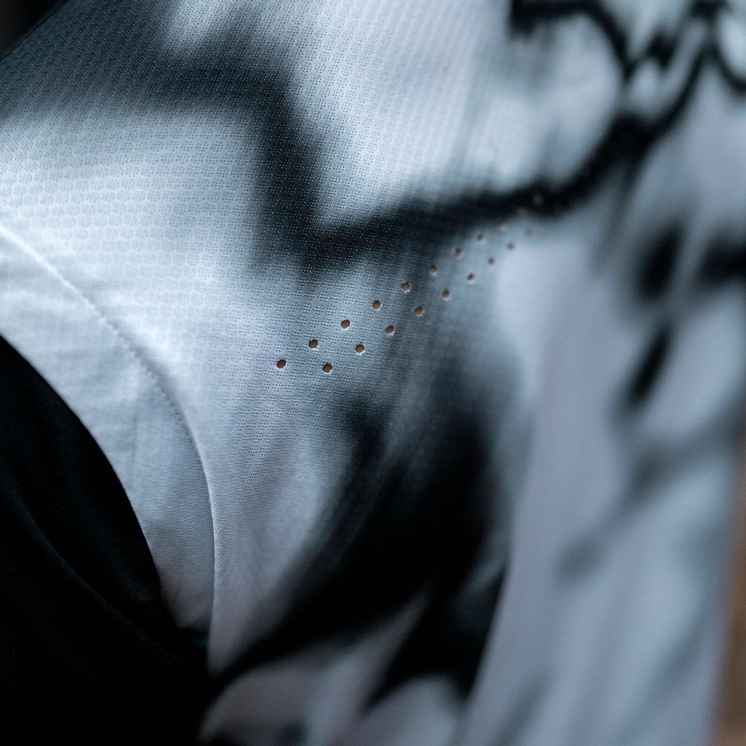 A construção híbrida combina tronco regular com mangas compressivas skin-fit num design 3D sem costuras que dá sensação de “segunda pele”. O IceYarn no corpo aporta frescura e propriedades antiestáticas/bacteriostáticas, enquanto as mangas CoWeave + Deflextion reforçam zonas críticas e melhoram a respirabilidade sem adicionar peso.