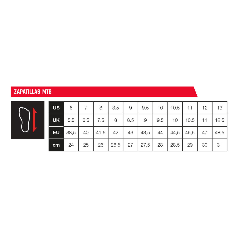 US 6–13 / UK 5.5–12.5 / EU 38.5–48.5 / CM 24–31